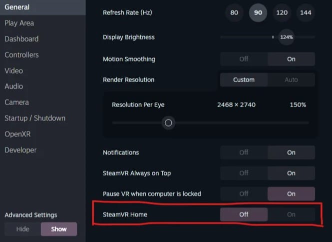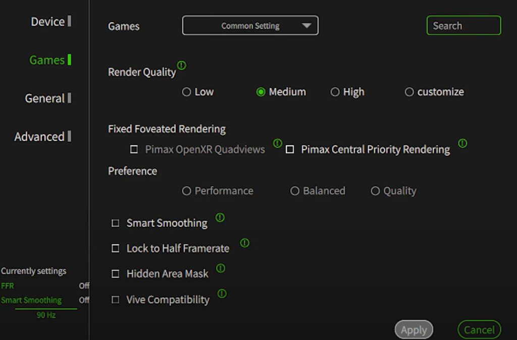 - SteamVR Settings: Adjust the “Video” and “Per-Application Video Settings” to tailor performance for each game.